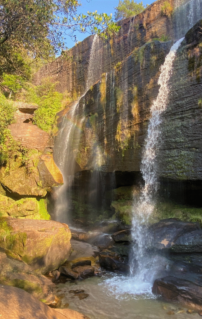 A foto tem que ser grande para caber a Cachoeira da Fenda, que tem 50 metros de altura!